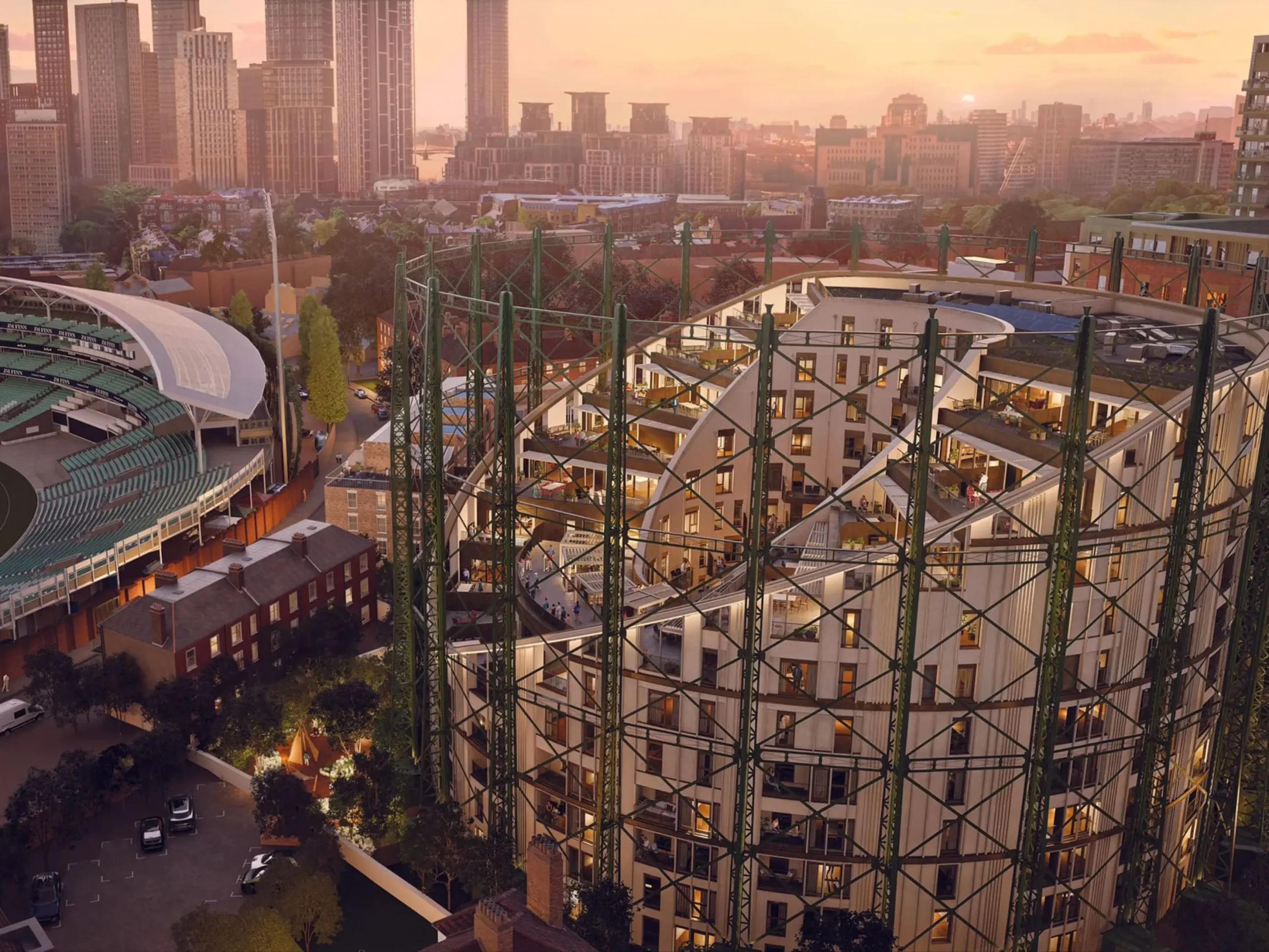 Set within a Grade II listed gasholder, The Halo is the landmark centrepiece of Oval Village, a transformative regeneration project by Berkeley Group in Zone 1 London. These luxury apartments in Oval offer panoramic views of The Kia Oval Cricket Ground and the London skyline, seamlessly blending historic architecture with modern design.