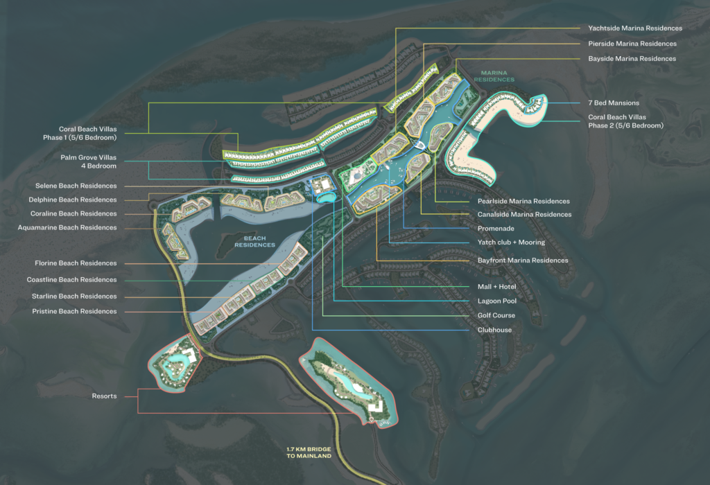 - 1–3 bedroom apartments, 4-6 bedroom villas and 7 bedroom waterfront mansions