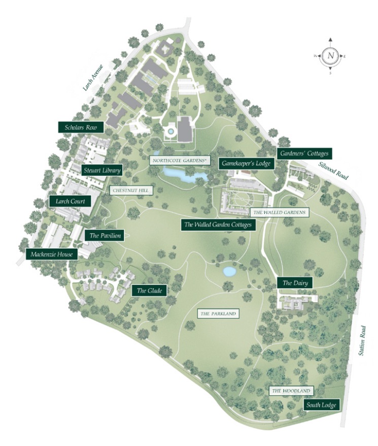 Larch Court is the final phase of this former 18th century country estate. It features 64 homes set within 47 acres of parkland and Grade II Listed gardens, the only new-build apartment opportunity in a market dominated by multi-million pound private houses, within an hour of the heart of London.
